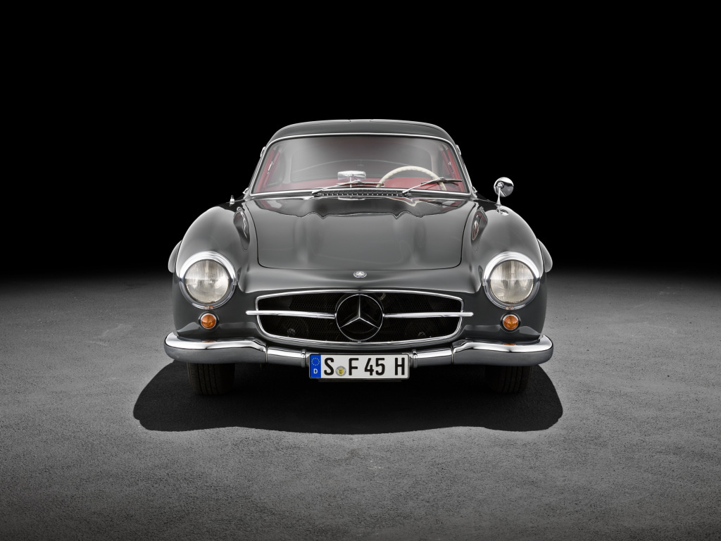 Mercedes-Benz 300 SL Coupé (W 198), Produktionszeitraum 1954 bis 1957. Studiofoto von vorn.