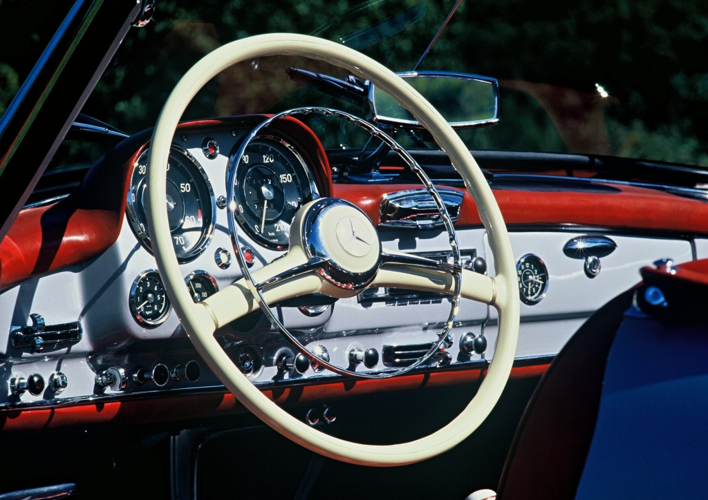 Mercedes-Benz 190 SL (W 121), Produktionszeitraum 1955 bis 1963. Detailfoto des Cockpits.