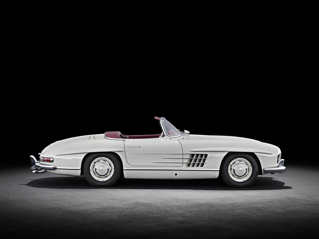 Mercedes-Benz 300 SL Roadster (W 198), Produktionszeitraum 1957 bis 1963. Studiofoto von rechts.