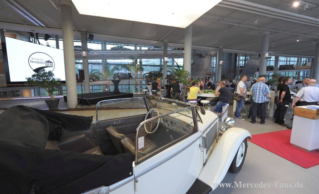 Die Mercedes-Benz Sternfahrt fand dieses Jahr bereits zum dritten Mal statt. 28 Mercedes-FahrerInnen plus ihre Begleitung nahmen in diesem Jahr an der Sternfahrt zum Pokalfinale des DFB in Berlin teil. Die Teilnehmer wurden aus weit über 200 Einsendungen gezogen, die sich über den "kicker" sowie "Antenne Bayern" beworben haben. Die Sternfahrer reisten nicht nur aus dem ganzen Bundesgebiet an, sogar aus der Schweiz nahm ein Gewinner mit seiner Begleitung an der Sternfahrt teil. Der Schweizer Bernd Reinshagen mit SL350 von 2008 aus Olten bei Zürich, hatte damit auch die weiteste Anreise. Bei den teilnehmenden Fahrzeugen waren absolute Highlights der Mercedes-Benz Geschichte vertreten. Das ältestes Auto war ein 170 S aus dem Jahr 1950 von Michael Brandenburg. Das Teilnehmerfeld war bunt gemischt, acht der 28 Teilnehmerfahrzeuge waren Oldtimer, darunter Ponton 180 und /8 aber es nahmen auch Youngtimer wie 300SL oder der 300CE und neuere Modelle wie SL, SLK oder E Coupé teil. Das Programm begann bereits am Freitag mit einem Empfang der Gäste in der Mercedes-Welt am Salzufer durch Claudia Merzbach (Leiterin Mercedes-Benz Sportkommunikation) und Klaus Smentek (Chefredakteur „kicker“). Anschließend folgte eine Talkrunde mit Klaus Ludwig auf der Sternfahrt-Bühne in der Mercedes-Welt sowie mit Thomas Helmer und Wolfgang Hochfellner (Busfahrer der deutschen Nationalmannschaft) im originalen Bus des DFB-Teams. Nach einem gemeinsamen Gruppenfoto der Sternfahrer mit den Promis erfolgte die gemeinsame Fahrt zum Inselhotel nach Potsdam. Angeführt wurde der Auto-Corso von Klaus Ludwig in einem brandneuen Mercedes-Benz SL 63 AMG. Der Abend klangt mit Champagnerempfang, Promi-Talkrunden und Buffet aus. Der Samstag begann für die Teilnehmer mit einer Schiffahrt über die Berliner Havelseen, um 15.00 Uhr startete der gemeinsame Autokorso der Teilnehmer in Richtung Olympiastadion Berlin, vorbei an vielen Sehenswürdigkeiten wie der Siegessäule, dem Reichstagsgebäude und dem Schloss Bellevue, mit anschließendem Besuch des DFB-Pokalfinales. Die Sternfahrer erfreuten sich einem Besuch des Hospitality-Bereichs des Football-Village Mercedes-Benz Sternfahrt, in dem ein unterhaltsamer Talk von Claudia Merzbach mit Fredi Bobic stattfand. Für die Teilnehmer war die dritte Auflage der Mercedes-Benz Sternfahrt wieder ein voller Erfolg.