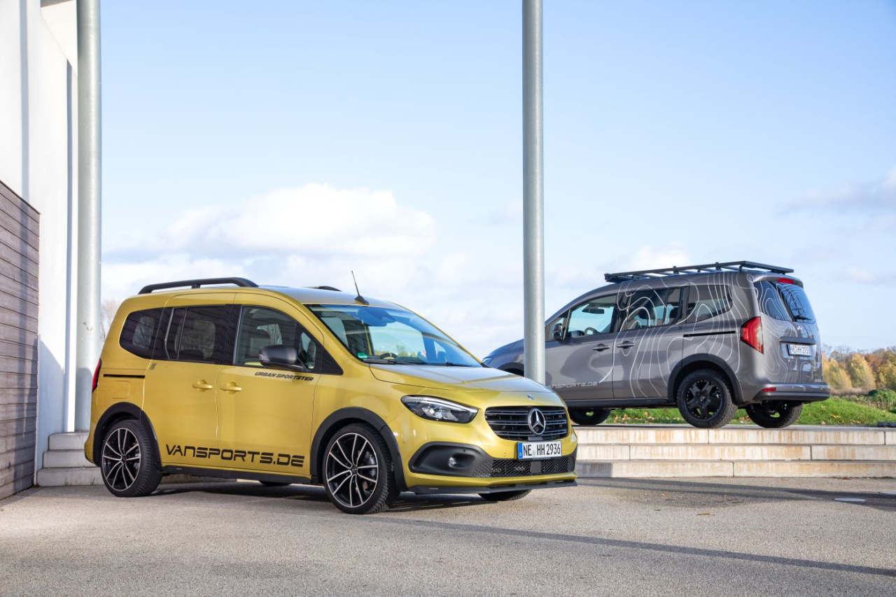 Bereits im vergangenen Juni präsentierten die auf die optische Veredelung und technische Individualisierung von kleinen und mittelgroßen Mercedes-Benz-Nutzfahrzeuge spezialisierten Experten von VANSPORTS.DE, ihre erste Interpretation der aktuellen Citan-Baureihe W420. Und schon im Sommer stellte VANSPORTS.DE in Aussicht, dass auf den mit 19-Zoll-Felgen, Tieferlegungsfedern und schwarzen SP Solid-Radlaufverbreiterungen ausgerüsteten „CrossSports“ weitere, umfangreicher modifizierte Citan-Varianten folgen würden. Hier sind nun die nächsten Ausbaustufen des VANSPORTS-Programms für den schwäbischen Hochdachkombi: Vorhang auf für die ungleichen Brüder „UrbanSportster“ und „Georide“!