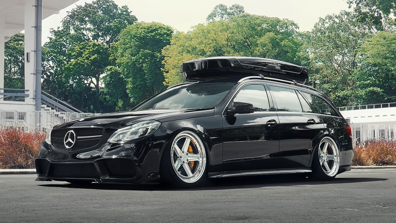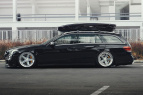 Tief-Schwarz: Unten angekommen steht das E63 T-Modell auf seinen 20-zölliigen Rotiform besser da