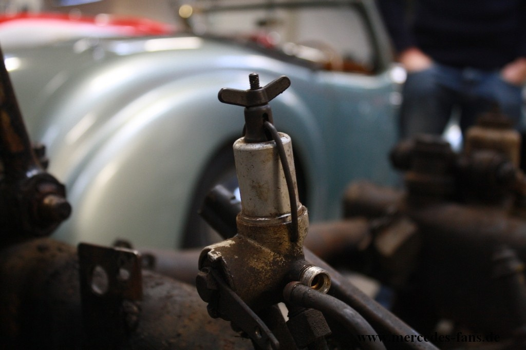 Es hat sich viel getan, seit wir das letzte Mal in der Hallen von Jörg Enger in Krefeld waren – Das sich mittlerweile auf vier Nachwuchs-Schrauber kristallisierte Team hat den 220er mittlerweile in die Hauptbestandteile zerlegt, die jetzt in mühseliger Handarbeit gereinigt werden. Dabei lässt Altmeister Jörg Enger den jungen Mercedes-Fans lange Leine und greift nur selten direkt ein, stellt aber zu jeder Zeit das Know-How und die Peripherie bereit, die das Projekt benötigt.