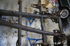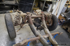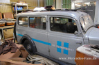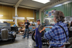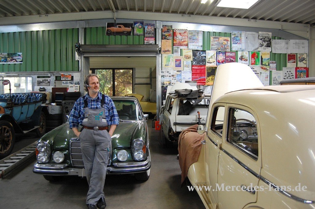 Es hat sich viel getan, seit wir das letzte Mal in der Hallen von Jörg Enger in Krefeld waren Das sich mittlerweile auf vier Nachwuchs-Schrauber kristallisierte Team hat den 220er mittlerweile in die Hauptbestandteile zerlegt, die jetzt in mühseliger Handarbeit gereinigt werden. Dabei lässt Altmeister Jörg Enger den jungen Mercedes-Fans lange Leine und greift nur selten direkt ein, stellt aber zu jeder Zeit das Know-How und die Peripherie bereit, die das Projekt benötigt.