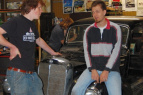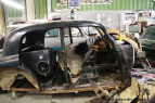Vier Nachwuchsschrauber, ein Mercedes-Benz 220 W187 und viel Arbeit