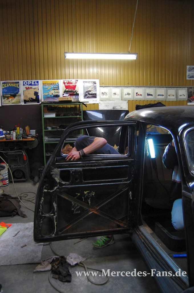 Vier Nachwuchsschrauber, ein Mercedes-Benz 220 W187 und viel Arbeit