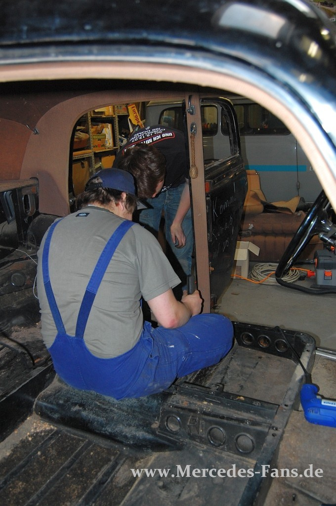 Vier Nachwuchsschrauber, ein Mercedes-Benz 220 W187 und viel Arbeit
