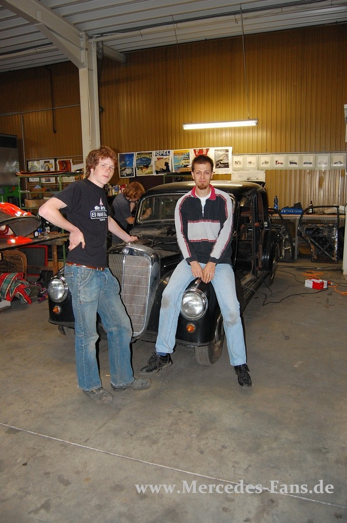 Vier Nachwuchsschrauber, ein Mercedes-Benz 220 W187 und viel Arbeit