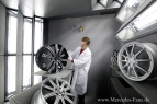 Eine gute Felge ist das Glanzstück eines Mercedes. Und sie soll es lang bleiben. In der Entwicklungsphase eines neuen Leichtmetallrades, besonders bei glanzgedrehten Bicolor-Rädern, sind Aussagen über die Korrosionsbeständigkeit sehr wichtig. Hier übernehmen die Mitarbeiterinnen und Mitarbeiter im Korrosionsprüfzentrum und in der Lackentwicklung eine wichtige Aufgabe und untersuchen unter genormten Bedingungen Materialproben oder komplette Räder. Zusätzlich kontrollieren sie auch die Materialien und Prozesse in der laufenden Produktion. Dazu steht eine Reihe von effektiven Verfahren zur Verfügung.