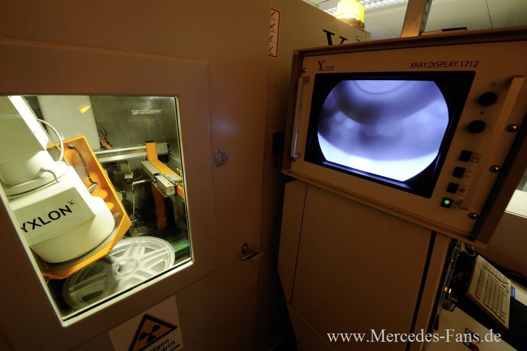 Mercedes-Benz vertraut bei der Herstellung von Leichtmetallrädern weltweit nur den renommiertesten und besten Zulieferern. Diese Unternehmen verfügen über ein hohes Know-how und fertigen nach den strengen Mercedes-Vorgaben. Zahl-reiche Prüfprozesse sowohl in der laufenden Fertigung wie in den Labors garantieren ein hohes Qualitätsniveau. Dazu gehören unter anderem die Kontrolle des Rohmaterials bei der Anlieferung und der Weiterverarbeitung, eine 100-prozentige Röntgenprüfung, Dichtheitsprüfungen, die laufende Kontrolle der engen geometrischen Daten und des Rundlaufs bei der mechanischen Bearbeitung sowie die Überwachung des Lackierprozesses. Am Beispiel eines Werkes eines solchen Zulieferers lässt sich die Radproduktion auf dem von Mercedes-Benz geforderten hohen Qualitätsniveau gut beschreiben.