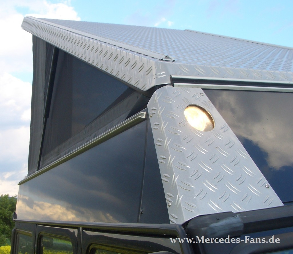 Das Team von 4x4Camp um Wolfgang Kempf widmet sich mit Sachverstand und Liebe zum Detail dem Aus- und Umbau von Geländewagen zu fernreisetauglichen Fahrzeugen. Ein Beispiel ist der hier gezeigte Mercedes G der SE Pur Baureihe aus dem Baujahr 2009. Er ist ausgestattet mit dem spaceCAB Aufstelldach und dem spaceBOX-Ausbau, die beide auch mit anderen Typen der Baureihe 463 kombiniert werden können. Mittlerweile ist der gezeigte G - neben weiteren Umbauten anderer Basisfahrzeuge - der Elfte in Folge für das Unternehmen aus Eschau. Auf dem Station ist das spaceCAB Classic - mit einer Gesamthöhe von 280 mm ab Regenrinne - verbaut. Damit bietet der Dachaufbau noch ausreichend Raum, um die Bettunterkonstruktion sowie Schlafsäcke oberhalb des Fahrer- oder Beifahrersitzes unterzubringen.