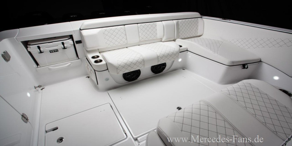 Wenn am 14. Februar in Miami, Florida USA, die Miami International Boat Show beginnt, dann wird mit der "42 Huntress" von Motoryacht- und Speedboot-Bauter Cigarette Racing Team eine Schiffchen im Hafen liegen, dass in Zusammenarbeit mit Mercedes AMG entstanden ist. Die 42 Huntress ist imStil des Mercedes G63 AMG SUV gebaut worden. Es ist die dritte Zusammenarbeit zwischen Mercedes AMG und Cigarette Racing