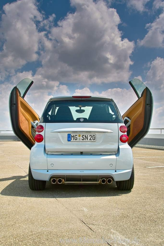 Unter Saschas Regie startet ein kleiner Smart kraftvoll durch. Mit gesteigerter Power, faszinierenden Lambo-Style-Doors, sportlichem Outfit und luxuriösem Interieur mausert sich der Smart Fortwo zum Überflieger der Baureihe 451.