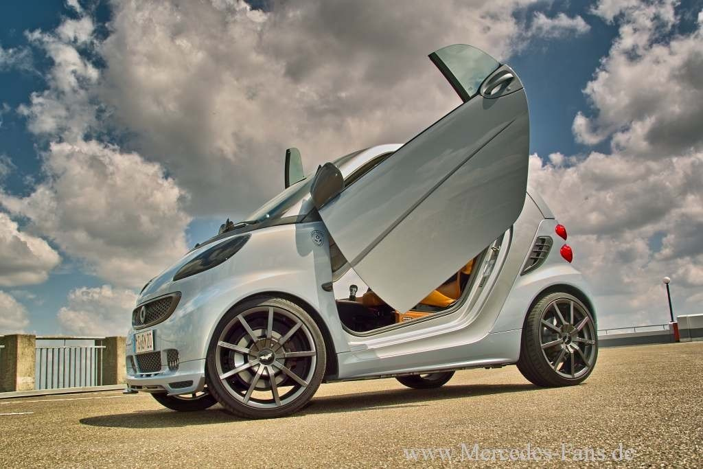 Unter Saschas Regie startet ein kleiner Smart kraftvoll durch. Mit gesteigerter Power, faszinierenden Lambo-Style-Doors, sportlichem Outfit und luxuriösem Interieur mausert sich der Smart Fortwo zum Überflieger der Baureihe 451.