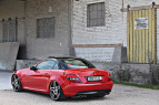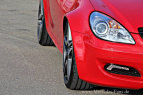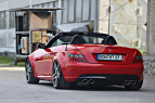 Der Mercedes von Tobias Hilkinger ging enorm in die Breite. Jeweils satte 50 mm legte der SLK der Baureihe R171 an den Seiten zu. Dabei erschöpft sich das Modifying aber nicht bloß in optischen Muskelspielchen. Auch der reale Output des Mercedes 200 Kompressor stieg deutlich an. Denn ein Software-Update beschert dem Zweisitzer eine aktuelle Leistung von 210 PS.