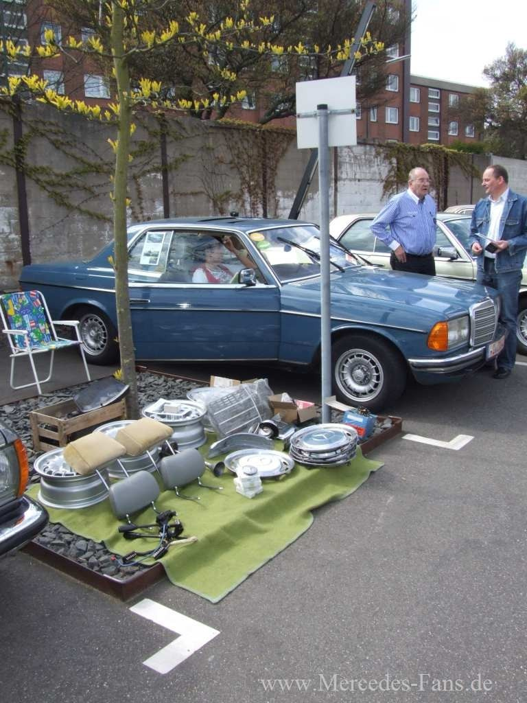Wenn die Mercedes Klassiker Saison so weitergeht wie zum Auftakt, zu dem der VfW 123 e.V., Ruchatz-Motorsport und der Alt-MB-Stammtisch Ruhrgebiet am 17.04.2011 ins Meilenwerk nach Düsseldorf eingeladen hatten, dann kann das ja nur noch schöner werden. Bei herrlichstem Frühlingswetter folgten zahlreiche Mercedes-Enthusiasten, Klassikerfreunde und viele Schaulustige der Einladung in die "Classic Remise Düsseldorf". Herzlich willkommen geheißen wurden nicht nur Mercedes-Young- und Oldtimer, sondern alle Fahrzeuge bis EZ 1988 und exotische Fahrzeuge aller Art. Zu dem markenoffenen Meetig kamen den Tag über denn auch rund 190 Fahrzeuge auf den Platz. Wie im letzten Jahr fand auch heuer wieder ein privater Teilemarkt im Rahmen eines Kofferraum-Verkaufs statt.