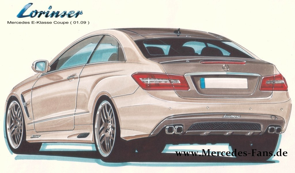 Mehr Leistung, mehr Abtrieb, mehr Optik! So das Ergebnis eines „Vieraugengesprächs“, das Sportservice Lorinser mit der neuen Mercedes-Benz E-Klasse W212 führte. Die ersten Bilder können wir bereits jetzt auf Mercedes-Fans.de präsentieren. Und als Extra liefern wir auch gleich noch die erste Zeichnungen des Loriser E-Klasse Coupés mit.