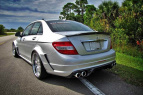Ein Mercedes C63 AMG zählt gewiss nicht zu denjenigen Fahrzeugen, welche Gefahr laufen, in der Masse unterzugehen. Dafür kann diese C-Klasse mit ihren 457 PS zu viel bewegen. Ein bisserl was geht freilich immer. Viele AMG Fahrer wünschen sich denn auch einen Nachschlag in punkto Power und Performance. Hier schlägt nun die Stunde der Tuner. Renntech gehört zu denjenigen Veredlern, welche einem Mercedes ganz viel zugeben haben. Klein beigeben? Das ist nicht die Sache dieses amerikanischen Tuningspezialisten. Und also pusht Renntech den V8 des Mercedes auf 605 PS und hüllt den C63 in ein furioses Breitbaukit.