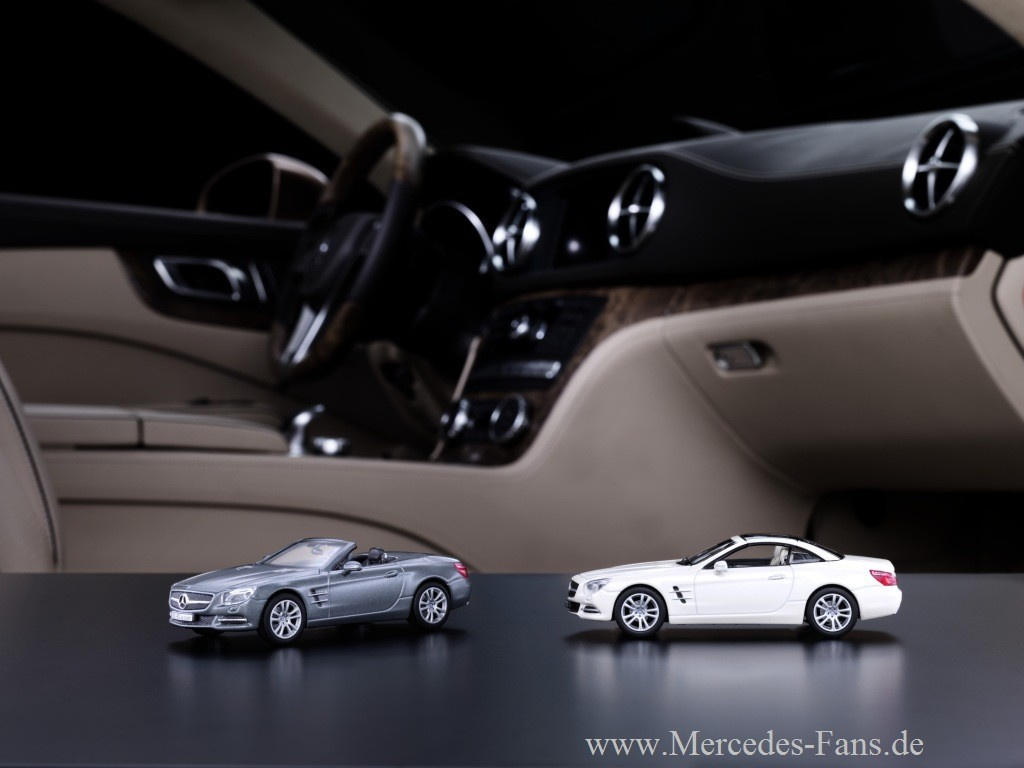 Vom eigenen Mercedes-Benz SL träumen Auto-Fans seit 60 Jahren. Und nicht nur das Original in der Garage weckt Begehrlichkeiten: Auch hochwertige Miniaturen des luxuriösen Sportwagens sind seit jeher gefragt. Nach der Markteinführung der neuen SL Generation präsentiert die Mercedes-Benz Collection den Roadster jetzt als detailgetreues, in Originalfarben lackiertes Modellauto in den Formaten 1:87, 1:43 sowie 1:18.