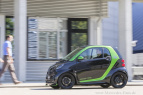 smart ergänzt sein lokal emissionsfreies Auto-Portfolio um den besonders dynamischen smart BRABUS electric drive. Die leistungsgesteigerte Variante ist wie das Serienmodell - als Coupé und Cabrio verfügbar. Elektrischer Fahrspaß à la smart plus eine Extraportion Fahrdynamik. Das bietet der smart BRABUS electric drive, der ab 27. September bestellt werden kann. Sein leistungsstarker Elektroantrieb basiert auf der Technologie des neuen smart fortwo electric drive, liefert aber mehr von allem: zum Beispiel 60 kW Spitzenleistung und 135 Nm maximales Drehmoment, was in Verbindung mit einem agileren Ansprechverhalten auf Fahrpedalbewegungen im Sportprogramm für eine spürbar bessere Beschleunigung sorgt. Den innerstädtisch relevanten Spurt von null auf 60 km/h erledigt das kompakte Kraftpaket in nur 4,4 Sekunden.