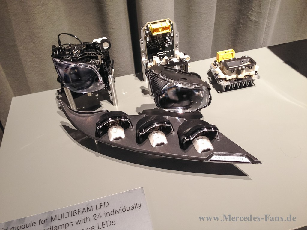 Das Herzstück der neuen Lichttechnologie sind 24 LED-Elemente, die mikroskopisch klein im rückwärtigen Teil des Scheinwerfers angeordnet sind und über ein Linsensystem verteilt und gesteuert die vielfältigen Lichtfunktionen ermöglichen. Drei satellitenähnliche LED im vorderen Scheinwerferbereich leuchten den Bereich vor dem Fahrzeug mit einem Lichtteppich homogen aus.