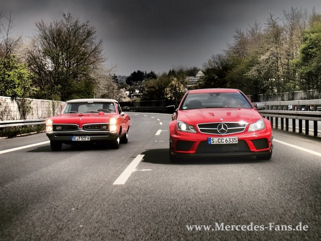 45 Jahre wird AMG in diesem Jahr alt. Und exakt 45 Jahre liegen auch zwischen diesen beiden Boliden, die mehr eint als nur die Farbe. Der Pontiac GTO gilt als der Begründer jenes Auto-Segments, das unter der Bezeichnung „Muscle Car“ furios Geschichte geschrieben hat. Das AMG Coupe darf sich mit Fug und Recht als German Muscle Car bezeichnen. Und legt in der Black Series Version obendrein ein Schippchen drauf!