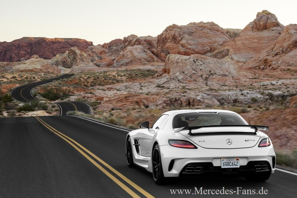 Mercedes-AMG präsentiert die supersportliche Highend-Version des Flügeltürers, den neuen SLS AMG Coupé Black Series. Inspiriert von der Rennversion SLS AMG GT3 fasziniert das fünfte Black  Series-Modell von Mercedes-AMG durch atemberaubendes Design, überragende Fahrdynamik und konsequenten Leichtbau nach der Strategie „AMG Lightweight Performance“. Mit einem Leergewicht von 1550 Kilo­ gramm nach DIN erreicht der SLS AMG Black Series ein Leistungsgewicht von 2,45 kg/PS. Der AMG 6,3-Liter-V8-Motor leistet 464 kW (631 PS) bei 7400/min und beschleunigt den dynamischsten Flügeltürer aller Zeiten in 3,6 Sekunden auf Tempo 100. Das AMG RIDE CONTROL Performance Fahrwerk, die AMG Hochleistungs-Keramik-Verbundbremsanlage und die gewichtsoptimierten AMG Leichtmetallräder in Schmiedetechnologie mit neu entwickelten Sportreifen heben die Fahrdynamik des SLS AMG Black  Series auf ein neues Niveau. Dazu tragen auch das AMG Hinterachs-Sperrdifferenzial mit elektronischer Regelung und das weiterentwickelte AMG SPEEDSHIFT DCT 7-Gang-Sportgetriebe bei. Zur weiteren Steigerung der Fahrdynamik steht auf Wunsch das AMG Aerodynamik-Paket zur Wahl.