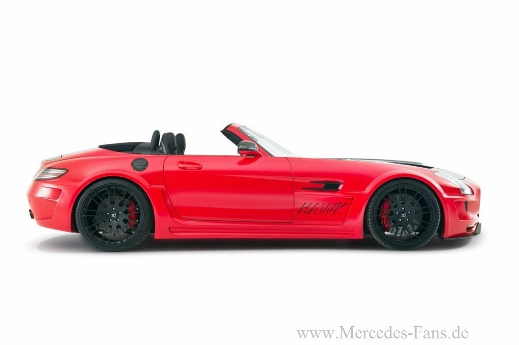 Auf dem 82. Genfer Autosalon wird Hamann, ein deutsche Tuner von Premiumautomobilen, den Hamann Hawk Roadster der Weltöffentlichkeit präsentieren. Mit einem Habicht (engl. Hawk) hat der Flügeltür gestutzte AMG SLS zwar nicht mehr viel gemein - doch frei wie der Wind ist der rotschwarze Roadster mit 320 km/h Topspeed und seinen 636 PS allemal.
