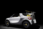 smart stellt die Autowelt mal wieder auf den Kopf und die Vorstellungen, wie ein urbaner Pick-up aussehen sollte, vom Kopf auf die Füße. Der for-us signalisiert mit einem Augenzwinkern: Das ist das richtige Auto für junge und junggebliebene Menschen, die aktiv sein wollen und dabei auf wenig Emissionen und wenig Verkehrsfläche Wert legen. Mit dem smart for-us ist das praktische Ladekonzept eines Pick-up erstmals in die Gegenwart des urbanen Verkehrs im 21. Jahrhundert übersetzt worden.