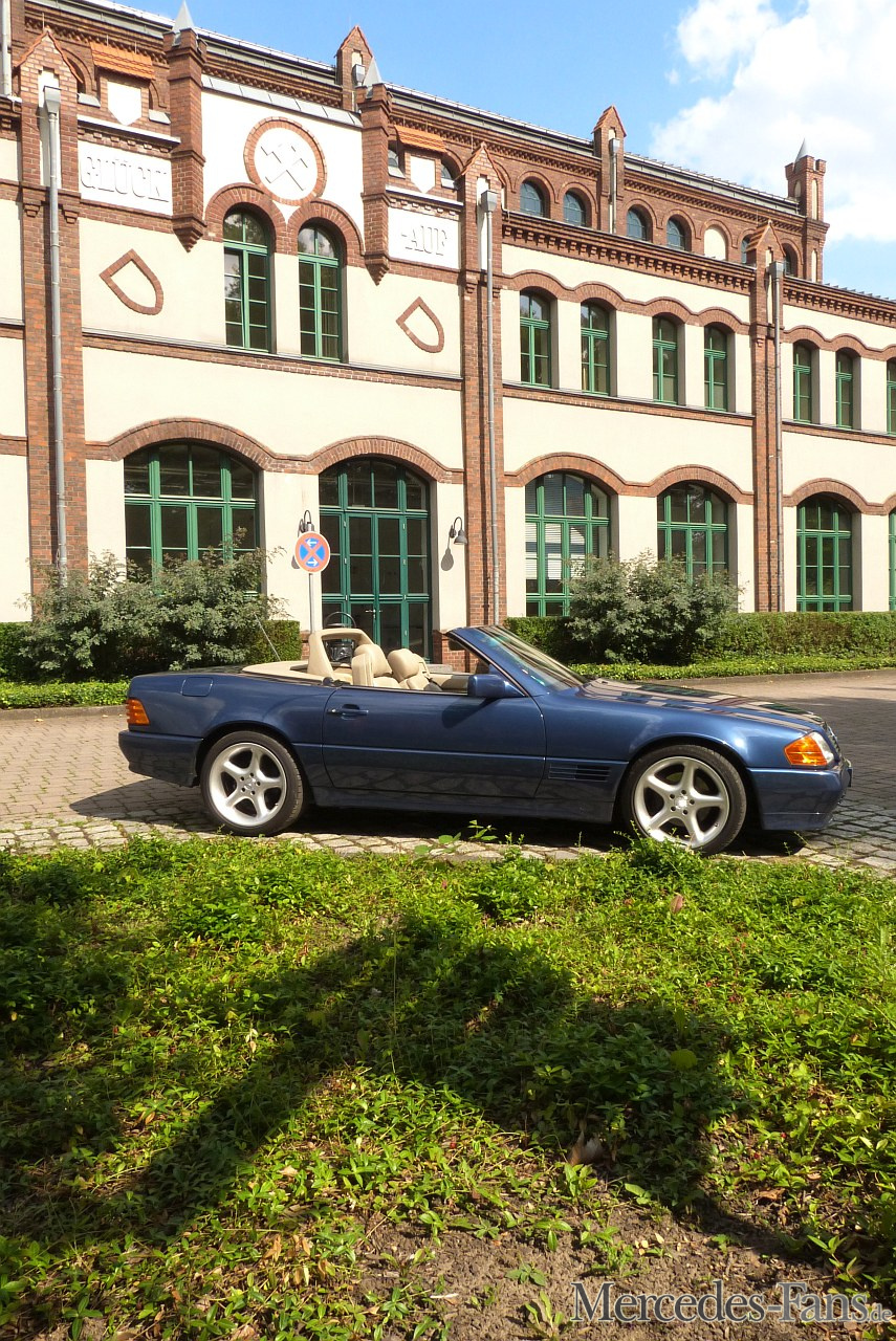 Sportlich und luxuriös, also SL, so stellte sich Klaus Eisenreich, bisher begeisterter und erfolgreicher Oldtimer – Rallyefahrer und Besitzer zweier Vorkriegs- Klassiker, vor zwei Jahren sein neues Hobbygerät vor. Da kam ihm der R 129 300SL-24 in nautikblau-metallic mit beiger Lederpolsterung gerade recht. Mit seinen 18 Zoll Felgen und 275er Reifen hinten sowie 245ern vorn ein Kraftpaket, wie Klaus es sich vorgestellt hatte. Jedoch etwas betagter und oben offen sollte das Fahrspaßauto schon sein, automobile Tradition spielt eben bei Klaus die Hauptrolle, wenn es um Fortbewegung auf vier Rädern geht. Doch mehr davon später…