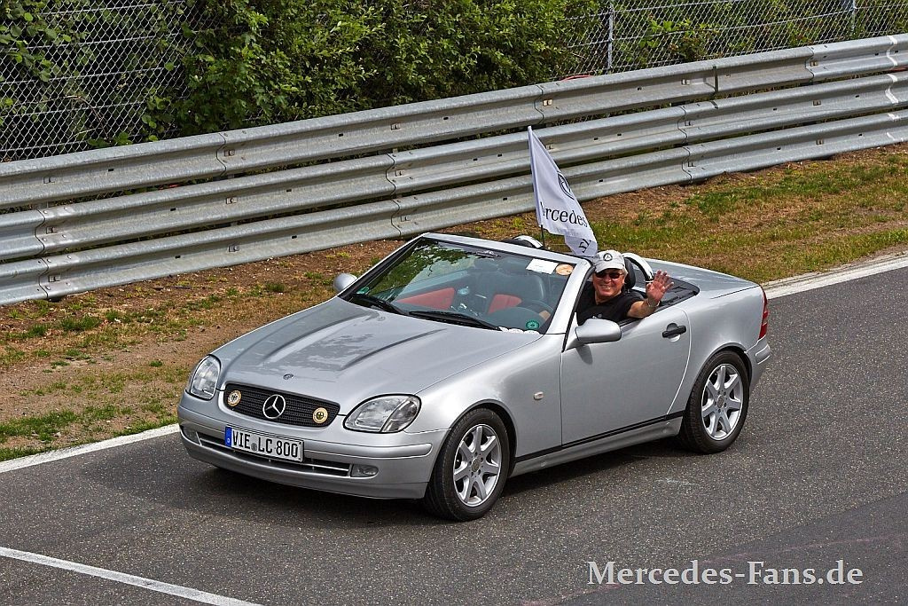 Mission erfüllt. 257 Mercedes-Fans haben am Samstag einen neuen Weltrekord für das Guinness Buch der Rekorde aufgestellt. Mit einer kompletten Runde über die Nordschleife des Nürburgrings gelang somit der längste Mercedes-Benz Autokorso auf einer öffentlichen Straße. Und auch der bisherige Rekordhalter, Peter Mohr, freute sich mit und das aus gutem Grund: Im Oktober 2011 hatten wir mit 219 Fahrzeugen einen Rekord für das Guinness Buch der Rekorde aufgestellt, der bis heute noch Gültigkeit hat, jetzt haben wir die Latte auf 257 Fahrzeuge hochgelegt, freut sich der in Kall ansässige Initiator der Rekordfahrt.