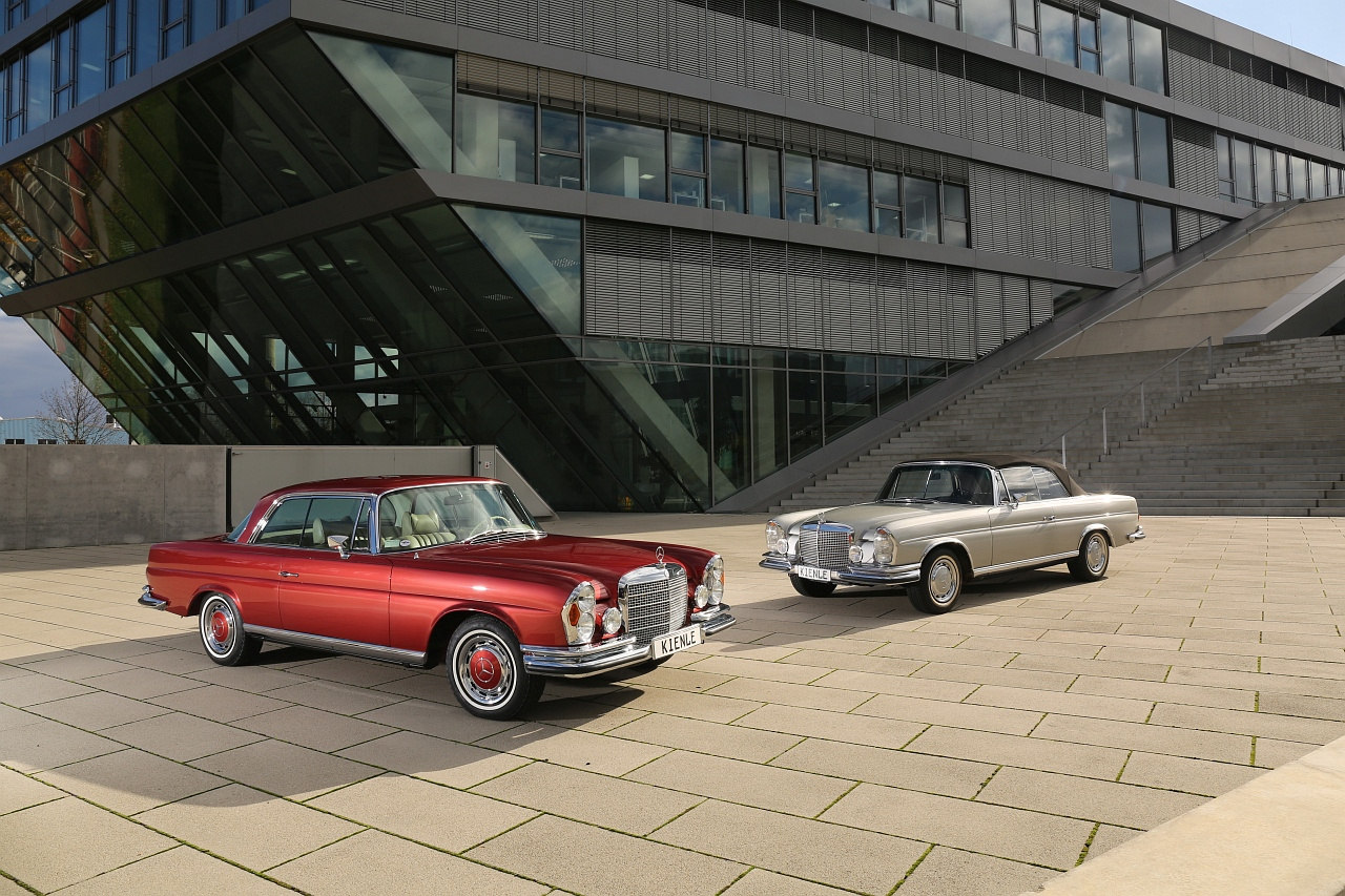 Das Coupé ist der erste je für den Verkauf gebaute W111-Zweitürer mit dem 3,5 Liter-V8-Motor, ausgeliefert am 26. August 1969, rund drei Monate vor Anlauf der Serienproduktion. Und das Cabriolet ist das erste und einzige ab Werk ausgelieferte offene Auto der W111-Baureihe mit hydraulisch betätigtem Verdeck. Sie beide sind unwiederbringliche Zeitzeugen.