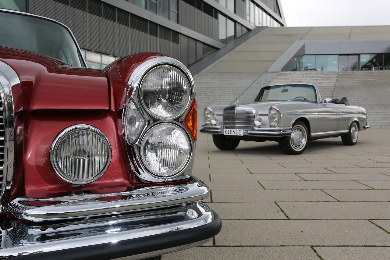 Das Coupé ist der erste je für den Verkauf gebaute W111-Zweitürer mit dem 3,5 Liter-V8-Motor, ausgeliefert am 26. August 1969, rund drei Monate vor Anlauf der Serienproduktion. Und das Cabriolet ist das erste und einzige ab Werk ausgelieferte offene Auto der W111-Baureihe mit hydraulisch betätigtem Verdeck. Sie beide sind unwiederbringliche Zeitzeugen.