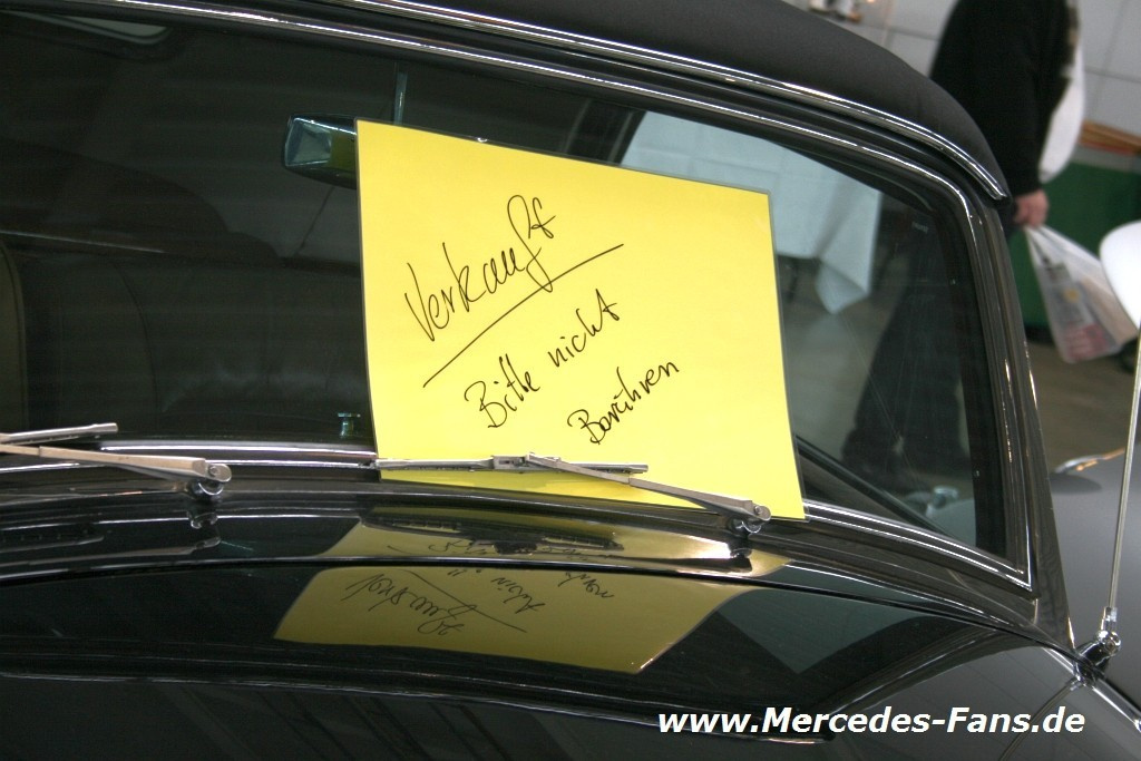 Die RetroClassics lockt auch Mercedes-Oldtimer-Fans noch bis zum13. März nach Stuttgart. In den acht Messehallen wird den Freunden des Automobils, das dieses Jahr bekanntlich seinen 125. Geburtstag feiert, einiges geboten. Für den Mercedes-Fans natürlich allen voran die Daimler Marke Mercedes-Benz. Wer noch keinen Mercedes sein eigen nennt, zahlreiche Exponate sind bei namhaften Mercedes-Oldtimer Händlern und auf der privaten Fahrzeugverkaufsbörse zu verkaufen. Diesen Marktplatz haben wie gewohnt fotografisch mit mindestens einem Bild pro Fahrzeug und dem Verkaufschild festgehalten.