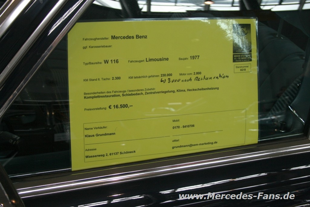 Für den Mercedes-Fans natürlich allen voran die Daimler Marke Mercedes-Benz. Wer noch keinen Mercedes sein eigen nennt, zahlreiche Exponate sind bei namhaften Mercedes-Oldtimer Händlern und auf der privaten Fahrzeugverkaufsbörse zu verkaufen. Diesen Marktplatz haben wie gewohnt fotografisch mit mindestens einem Bild pro Fahrzeug und dem Verkaufschild festgehalten.