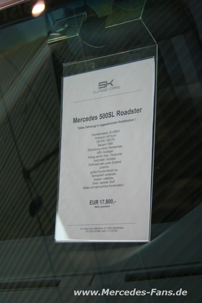 Die RetroClassics lockt auch Mercedes-Oldtimer-Fans noch bis zum13. März nach Stuttgart. In den acht Messehallen wird den Freunden des Automobils, das dieses Jahr bekanntlich seinen 125. Geburtstag feiert, einiges geboten. Für den Mercedes-Fans natürlich allen voran die Daimler Marke Mercedes-Benz. Wer noch keinen Mercedes sein eigen nennt, zahlreiche Exponate sind bei namhaften Mercedes-Oldtimer Händlern und auf der privaten Fahrzeugverkaufsbörse zu verkaufen. Diesen Marktplatz haben wie gewohnt fotografisch mit mindestens einem Bild pro Fahrzeug und dem Verkaufschild festgehalten.