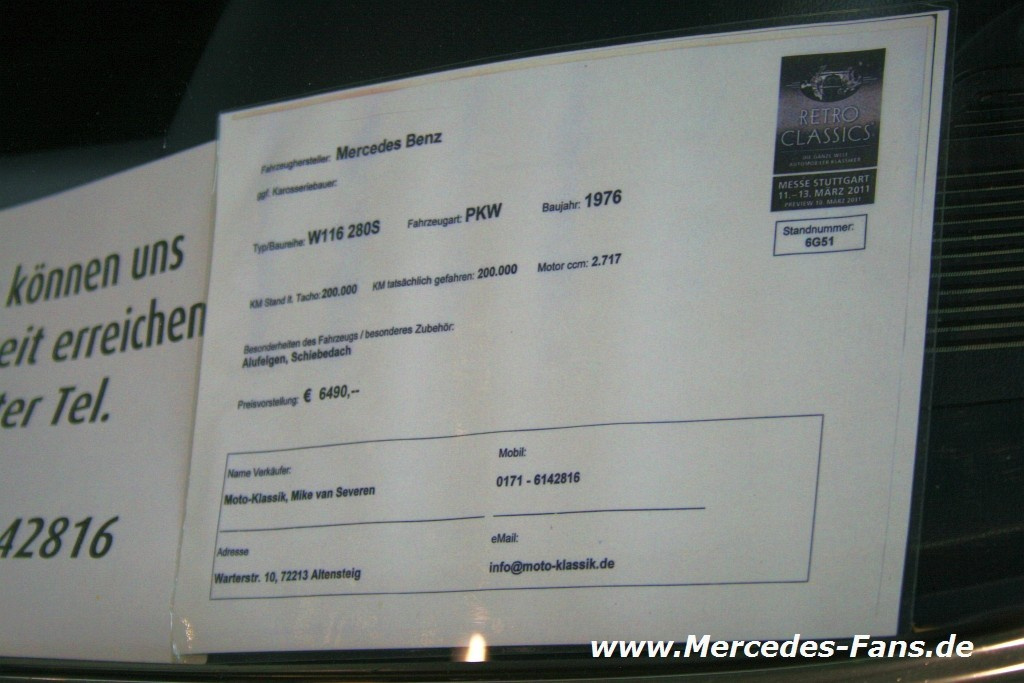 Für den Mercedes-Fans natürlich allen voran die Daimler Marke Mercedes-Benz. Wer noch keinen Mercedes sein eigen nennt, zahlreiche Exponate sind bei namhaften Mercedes-Oldtimer Händlern und auf der privaten Fahrzeugverkaufsbörse zu verkaufen. Diesen Marktplatz haben wie gewohnt fotografisch mit mindestens einem Bild pro Fahrzeug und dem Verkaufschild festgehalten.