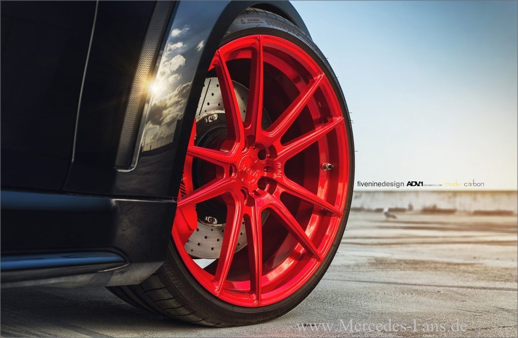 Der Mercedes C63 AMG ist ein Sportwagen der Extraklasse. Gleichwohl bietet der Zubehörmarkt sogar für dieses Modell eines Exportion Rassigkeit an. Bei der Fima "Mode Carbon" erhielt der Supersportwagen einen Heckdiffusor und Spiegel aus Kohlenstoff. So richtig dynamisch und aggressiv kommt der Mercedes C63 AMG mit seiner schwarzen Karosserie aber mit dem roten Finish der 20zölligen ADV5.21 SL Räder. A touch to much? Urteilen Sie selbst.