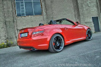 Nicht jeder mag die Farbe Rot am Auto gerne sehen. Sie ist vielen einfach zu knallig. Dabei kann das rote Kolorit ein Baustein für einen rassigen Umbau sein. So sieht es jedenfalls Mercedes-Benz SLK Fahrer Jörg Marso. Rot fällt auf. Rot steht für Leidenschaft. Und Rot macht mehr Lust und Laune auf besondere Sternstunden hinterm Volant des in AMG Optik feingetunten R171, den Jörg Marso auf den Namen "Roter Baron" taufte.