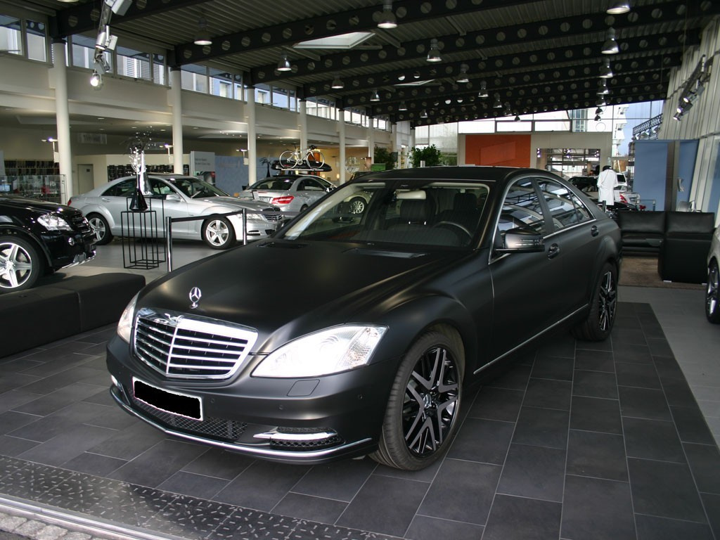 Mercedes S500 W221 Umbau Modellpflege foliert Frontschuerze Tagfahrlicht Seitenansicht 1024x768.jpg