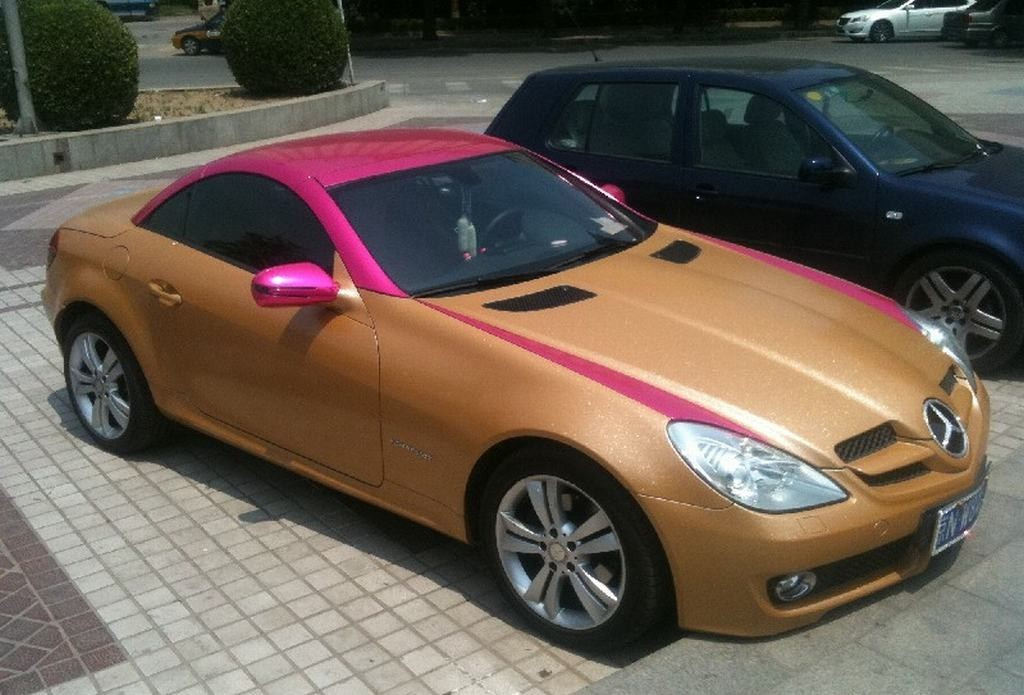 Sakrileg: Mercedes SLK in Glitzergold und Rosa!