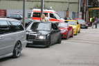 Nachdem der Himmel am Sonntagmorgen dunkel verhangen und die Lufttemperatur auch nicht gerade gemütlich war, fuhren dennoch nach Öffnung der Einfahrt wieder reihenweise die Mercedes-Fans auf das Gelände. So konnten die Besucher ab elf Uhr die ersten SCHÖNEN STERNE, die sich an der Bühne für die anstehende Pokalvergabe präsentierten, bestaunen und begutachten.