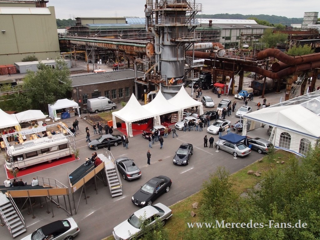 Nachdem der Himmel am Sonntagmorgen dunkel verhangen und die Lufttemperatur auch nicht gerade gemütlich war, fuhren dennoch nach Öffnung der Einfahrt wieder reihenweise die Mercedes-Fans auf das Gelände. So konnten die Besucher ab elf Uhr die ersten SCHÖNEN STERNE, die sich an der Bühne für die anstehende Pokalvergabe präsentierten, bestaunen und begutachten.