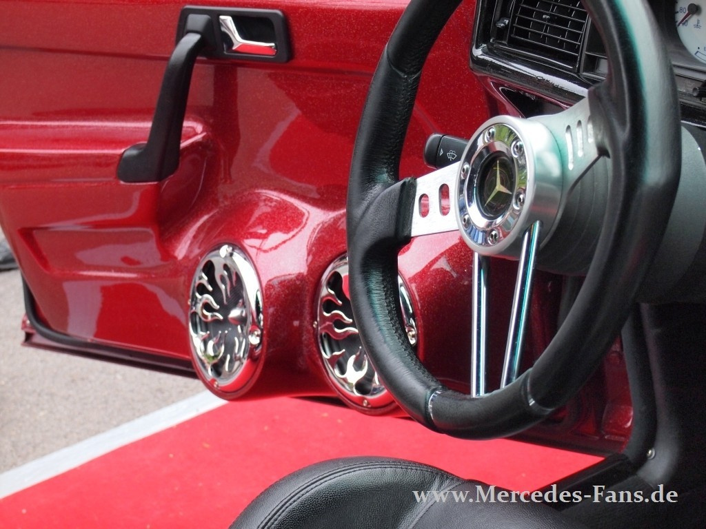 Nachdem der Himmel am Sonntagmorgen dunkel verhangen und die Lufttemperatur auch nicht gerade gemütlich war, fuhren dennoch nach Öffnung der Einfahrt wieder reihenweise die Mercedes-Fans auf das Gelände. So konnten die Besucher ab elf Uhr die ersten SCHÖNEN STERNE, die sich an der Bühne für die anstehende Pokalvergabe präsentierten, bestaunen und begutachten.