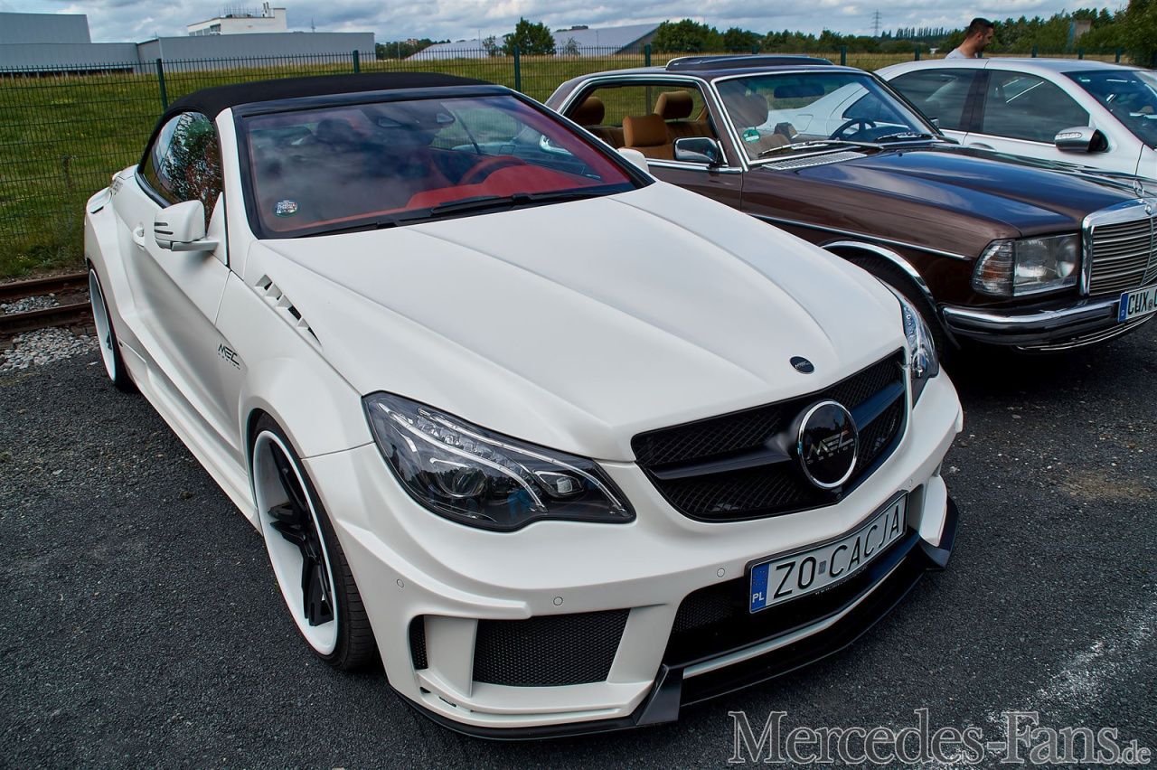 Längst hat SCHÖNE STERNE® überregionale Bedeutung erlangt. Die Besucher kamen im vergangenen Jahr nicht nur aus allen Teilen der Republik, sondern auch aus dem Ausland und nahmen dabei oft lange Anreisen in Kauf. Der Mercedes-Benz Club Lettland dokumentierte seine Anfahrt aus Riga im sozialen Netz und auf extra angefertigten T-Shirts. Die Mercedes-verrückten Russen aus Moskau waren ebenso auf eigener Achse angereist wie die Mercedes-Fans aus Kiew in der Ukraine. Ein norwegischer Fan präsentierte einen perfekt erhaltenen 190E mit „nahezu Nullausstattung“ und eine junge Frau aus Mailand hatte ihren roten CLS auf goldene Lamborghini-Räder gestellt. Erstmals waren auch Mercedes-Fans aus Kanada und Kuwait vor Ort.
