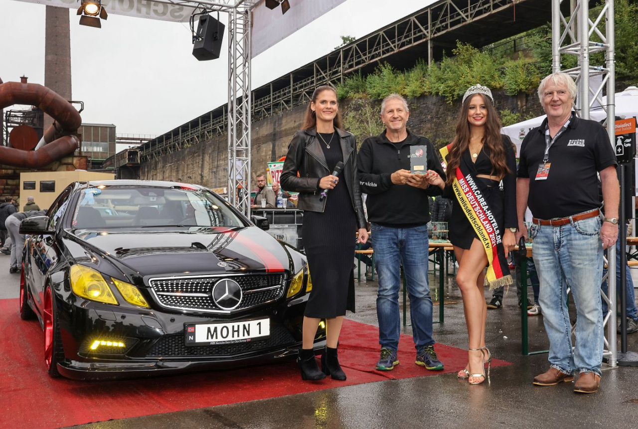 Die Bewertung übrigens verlief nach den gleichen Statuten wie in den Vorjahren. Die von der Redaktion bestimmten Jury-Mitglieder suchten streng subjektiv ihre persönlichen Favoriten aus der Vielzahl der Fahrzeuge heraus, versah diese mit einer Schleife und die so ausgezeichneten Fahrzeuge erhielten hinterher auf dem Roten Teppich ihren Pokal - sponsored by Classic Analytics. Es gibt also bis auf die Ausnahmen "Weiteste Anreise", "Best of 50's", "Best of 60s" und "Best of 70s" keine Kategorien, sondern die Jury ist aufgefordert, aus der Vielzahl der angereisten Fahrzeuge 50 bemerkenswerte SCHÖNE STERNE herauszupicken. Ihr könnt uns glauben: Das ist gar nicht so einfach!