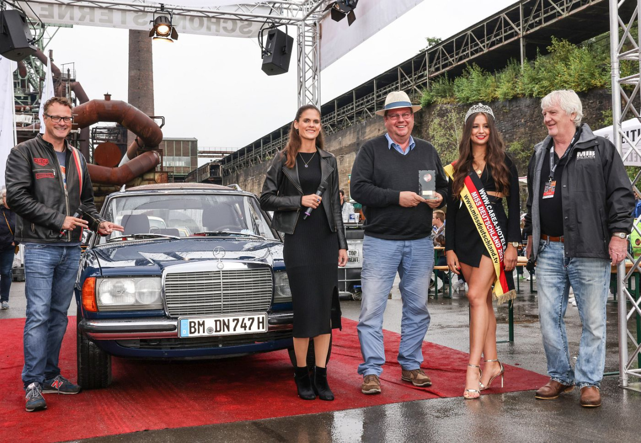 Die Bewertung übrigens verlief nach den gleichen Statuten wie in den Vorjahren. Die von der Redaktion bestimmten Jury-Mitglieder suchten streng subjektiv ihre persönlichen Favoriten aus der Vielzahl der Fahrzeuge heraus, versah diese mit einer Schleife und die so ausgezeichneten Fahrzeuge erhielten hinterher auf dem Roten Teppich ihren Pokal - sponsored by Classic Analytics. Es gibt also bis auf die Ausnahmen "Weiteste Anreise", "Best of 50's", "Best of 60s" und "Best of 70s" keine Kategorien, sondern die Jury ist aufgefordert, aus der Vielzahl der angereisten Fahrzeuge 50 bemerkenswerte SCHÖNE STERNE herauszupicken. Ihr könnt uns glauben: Das ist gar nicht so einfach!