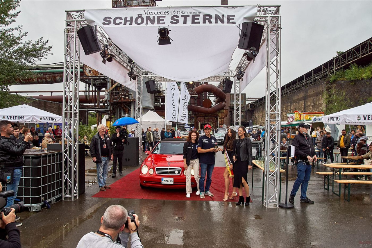 Die Bewertung übrigens verlief nach den gleichen Statuten wie in den Vorjahren. Die von der Redaktion bestimmten Jury-Mitglieder suchten streng subjektiv ihre persönlichen Favoriten aus der Vielzahl der Fahrzeuge heraus, versah diese mit einer Schleife und die so ausgezeichneten Fahrzeuge erhielten hinterher auf dem Roten Teppich ihren Pokal - sponsored by Classic Analytics. Es gibt also bis auf die Ausnahmen "Weiteste Anreise", "Best of 50's", "Best of 60s" und "Best of 70s" keine Kategorien, sondern die Jury ist aufgefordert, aus der Vielzahl der angereisten Fahrzeuge 50 bemerkenswerte SCHÖNE STERNE herauszupicken. Ihr könnt uns glauben: Das ist gar nicht so einfach!