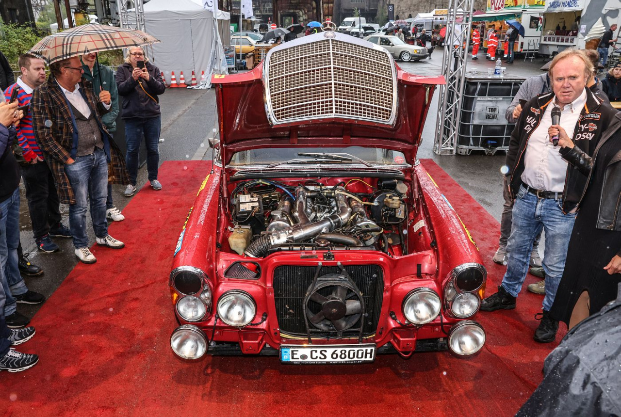 Die Bewertung übrigens verlief nach den gleichen Statuten wie in den Vorjahren. Die von der Redaktion bestimmten Jury-Mitglieder suchten streng subjektiv ihre persönlichen Favoriten aus der Vielzahl der Fahrzeuge heraus, versah diese mit einer Schleife und die so ausgezeichneten Fahrzeuge erhielten hinterher auf dem Roten Teppich ihren Pokal - sponsored by Classic Analytics. Es gibt also bis auf die Ausnahmen "Weiteste Anreise", "Best of 50's", "Best of 60s" und "Best of 70s" keine Kategorien, sondern die Jury ist aufgefordert, aus der Vielzahl der angereisten Fahrzeuge 50 bemerkenswerte SCHÖNE STERNE herauszupicken. Ihr könnt uns glauben: Das ist gar nicht so einfach!