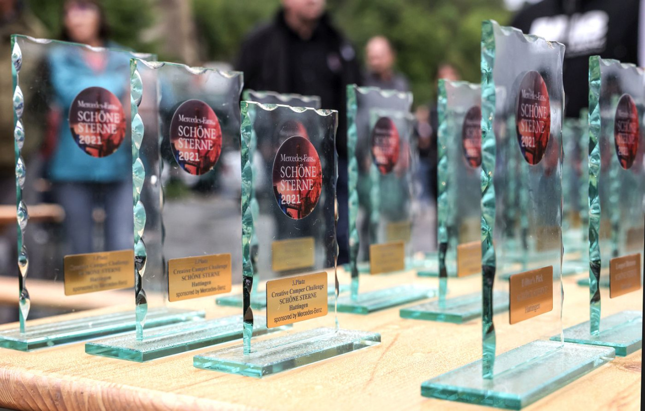 Die Bewertung übrigens verlief nach den gleichen Statuten wie in den Vorjahren. Die von der Redaktion bestimmten Jury-Mitglieder suchten streng subjektiv ihre persönlichen Favoriten aus der Vielzahl der Fahrzeuge heraus, versah diese mit einer Schleife und die so ausgezeichneten Fahrzeuge erhielten hinterher auf dem Roten Teppich ihren Pokal - sponsored by Classic Analytics. Es gibt also bis auf die Ausnahmen "Weiteste Anreise", "Best of 50's", "Best of 60s" und "Best of 70s" keine Kategorien, sondern die Jury ist aufgefordert, aus der Vielzahl der angereisten Fahrzeuge 50 bemerkenswerte SCHÖNE STERNE herauszupicken. Ihr könnt uns glauben: Das ist gar nicht so einfach!